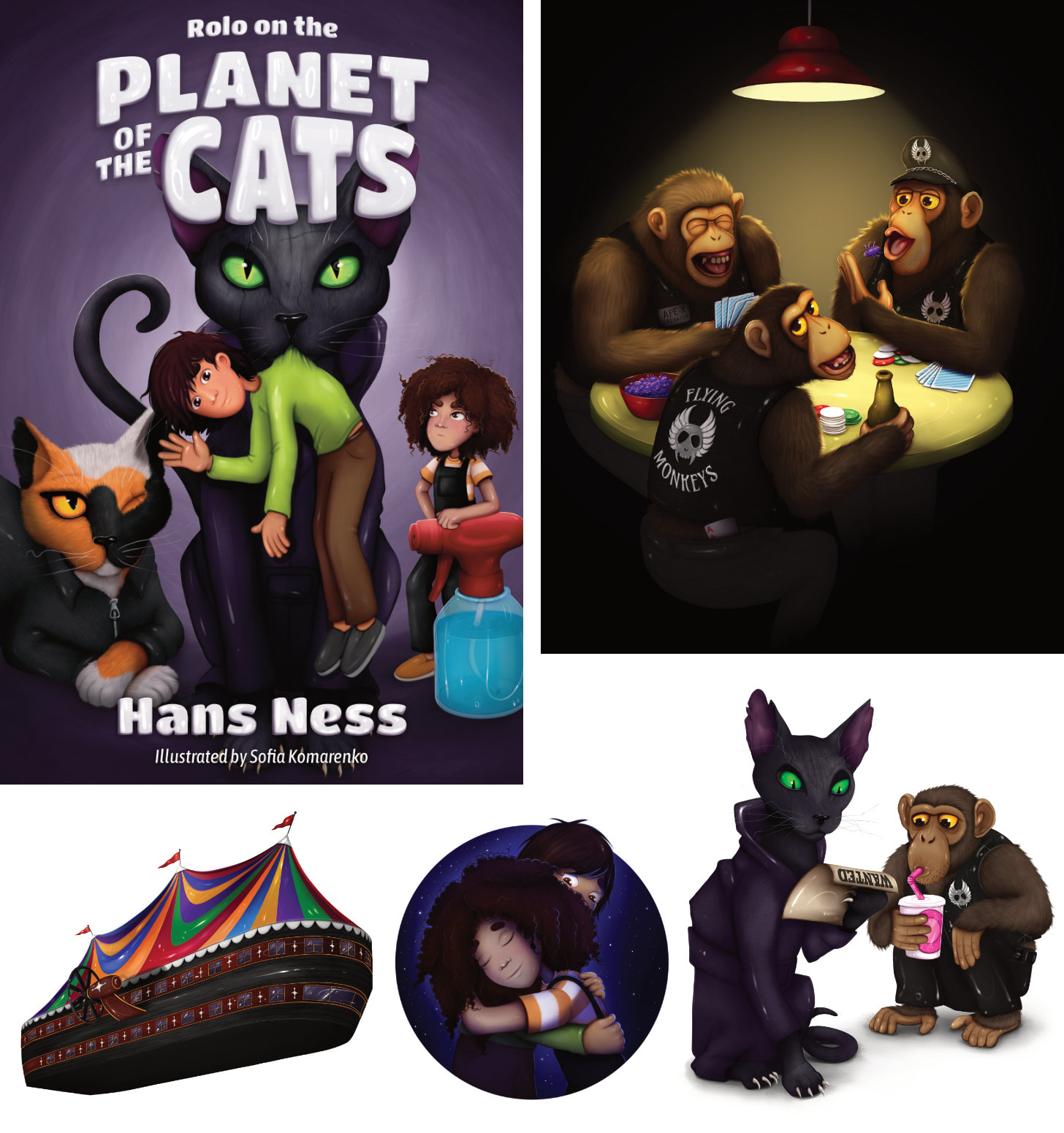 The officers turned to each other with expressions of exhaustion. Then Sergeant Tiger sprinted after Rolo. With a few effortless bounds, he pinned Rolo face-down in the sand. He bit the back of Rolo’s hoodie and lifted him by the scruff of his neck. Rolo dangled from the sergeant’s jaws, flailing in despair. Quiggles leaped up and grabbed Rolo’s leg, futilely trying to free him.